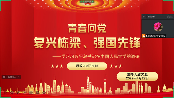 马克思主义学院学生党员姚雯晶也深有感触:“在五四青年节即将到来之际,习近平总书记亲临中国人民大学考察调研,勉励广大青年牢记党的嘱托,立志民族复兴,跑出当代青年的最好成绩。我倍感鼓舞、深受振奋!作为马克思主义理论的学习者、研究者,我一定不负使命、勇毅前行,深入研读经典,扎根中国大地,争当民族复兴的开路先锋和事业闯将,奋力书写当代青年的最好答卷。”