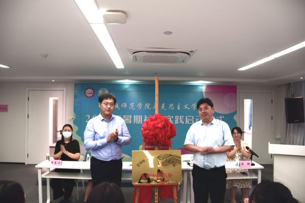 6月14日下午,马克思主义学院2022年暑期社会实践启动仪式暨“青年礼赞新时代,青年追梦复兴路”主题宣讲活动在盐都区网红直播基地举行。盐都团区委书记孙杰、马克思主义学院党总支书记李荣庆共同为“马克思主义学院社会实践基地”揭牌并为马院暑期社会实践团队授旗。出席仪式的还有盐渎街道团委书记穆昱洁、马克思主义学院团委书记陈翩及部分学生代表。陈翩主持启动仪式。