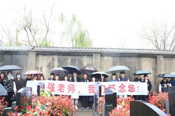 清明将至,4月4日上午,春雨绵绵,马克思主义学院和法政学院师生代表冒雨前往兰园公墓扫墓,缅怀王强老师。马克思主义学院党总支书记李荣庆,法政学院党总支副书记高娟,马克思主义学院团委副书记朱蒙玲及部分学生代表参加了祭扫活动。
