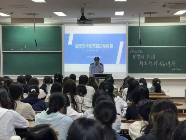 9月24日,学院邀请盐城市公安局亭湖分局大洋派出所王警官担任主讲,在通榆校区主楼B203开展“民警进校园”防诈骗讲座。王警官采用“以案说诈”的形式,结合实际案例让同学们直观感受诈骗的危害性与多样性,同时借助多媒体还原诈骗场景,详细介绍校园高发诈骗类型。此次讲座理论与案例相结合,进一步增强学生防骗、识骗、拒骗意识,帮助学生防范于心,反诈于行。