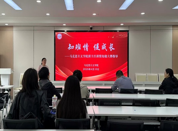 为深入贯彻落实立德树人根本任务,全面提升班主任队伍的专业素养与育人能力,进一步夯实班级管理基础,4月10日下午,马克思主义学院在博学楼A208举办班主任素质能力提升暨班情知晓大赛院内指导培训。本次活动特邀校党委学生工作部副部长、党委研究生工作部副部长、学生工作处副处长雷承富到场指导,学院党委副书记吴惠、参赛班主任吴喜琼、邱天星、全体辅导员及部分新任班主任共同参加了培训。