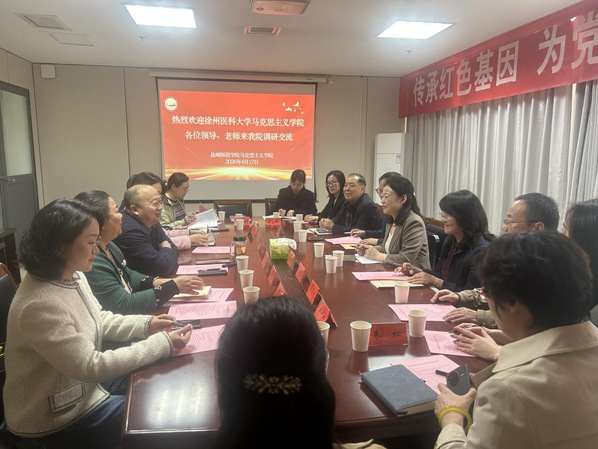 4月17日下午,徐州医科大学马克思主义学院党总支书记陈玮率队来我院开展调研交流,我院党委书记高娟,党委副书记、院长王志国,副院长唐萍、曾凡云,思政名师工作室负责人宋敏、顾莉等相关成员参加座谈。